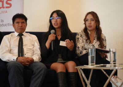Participaron representantes de la Universidad Nacional del Oriente (Yacuiba), la Universidad Mayor de San Andrés y la Universidad Mayor de San Simón, junto a Laurie Rogers, jefa de Cooperación de la Embajada de Canadá, y Malena Morales, directora de Ipas Bolivia, quienes destacaron la articulación entre formación académica y trabajo en territorio.