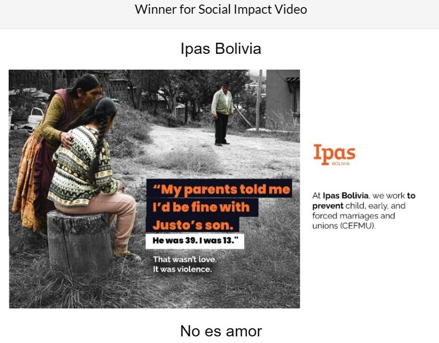 Ipas Bolivia gana el Ragan Video, Visual & Virtual Awards 2025 en la categoría Social Impact Video por el cortometraje “No es Amor”